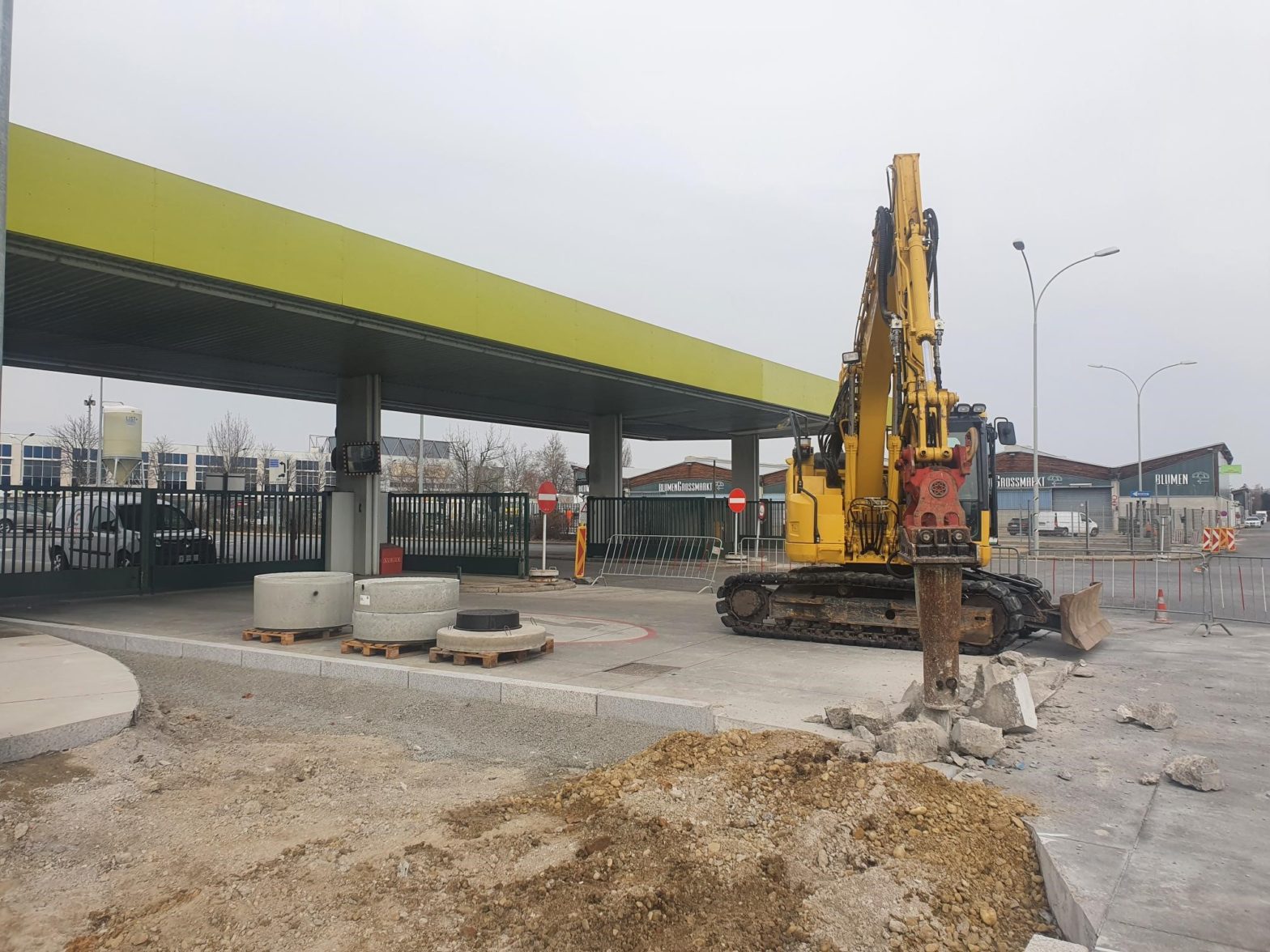 Die Bauarbeiten, vor allem im Einfahrtsbereich Laxenburger Straße 365, sind bereits im Gange. Aus diesem Grund wird nun das mittlere Tor für die Einfahrt aller Fahrzeuge genutzt (voraussichtlich bis Ende März).